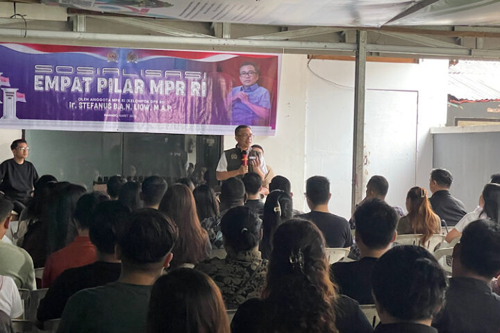 Manado, TERASMANADO.COM – Anggota DPD RI Dapil Sulut Ir. Stefanus B.A.N Liow, MAP, melaksanakan sosialisasi Empat Pilar MPR RI kepada komunitas pemuda di Manado,