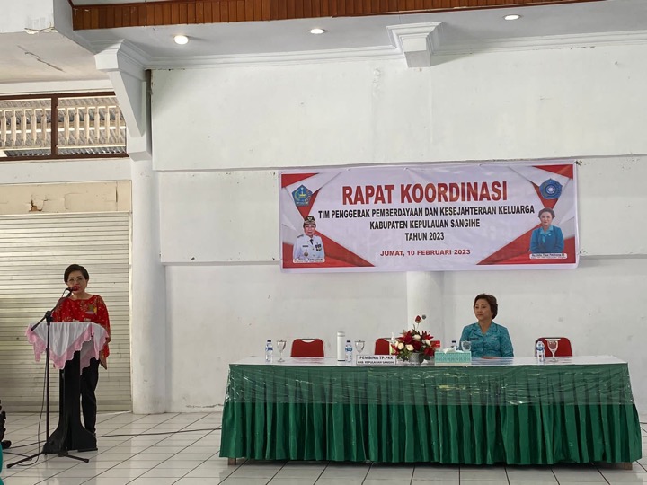 TERASMANADO.COM— Tim Penggerak Pemberdayaan dan Kesejahteraan Keluarga (TP-PKK) Kabupaten Kepulauan Sangihe menggelar rapat koordinasi (Rakor) tahun 2023 di Papanuhung Santiago Tampungang Lawo, Jumat (10/2/2023).