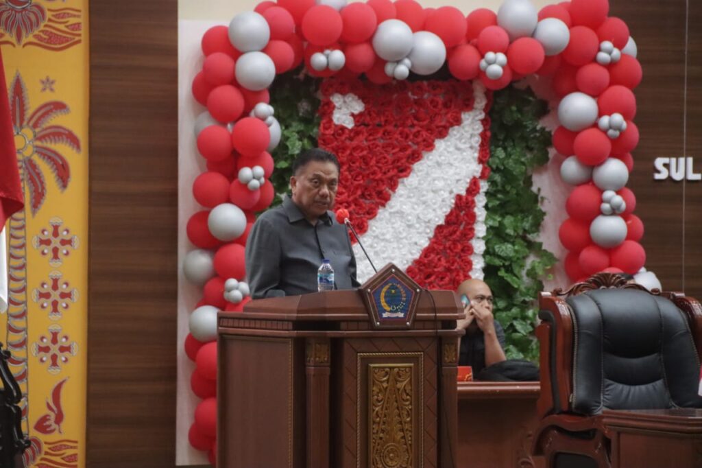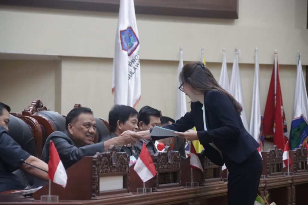 Setelah itu, Gubernur Olly Dondokambey memberikan penyampaian/penjelasan terhadap Ranperda tentang APBD Provinsi Sulut 2024.