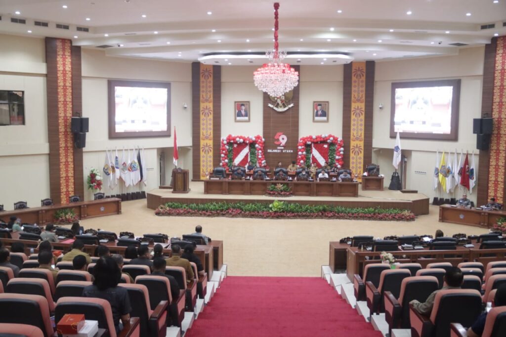 TERASMANADO.COM – Dewan Perwakilan Rakyat Daerah (DPRD) Provinsi Sulawesi Utara (Sulut) menggelar rapat paripurna dalam rangka penyampaian/penjelasan gubernur terhadap Ranperda tentang APBD Provinsi Sulut tahun anggaran 2024, sekaligus pemandangan umum fraksi terhadap ranperda tersebut serta tanggapan dan/atau jawaban gubernur terhadap pemandangan umum fraksi, Selasa (10/10/2023).