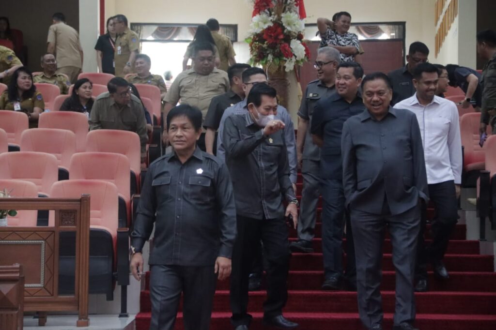 Rapat paripurna dipimpin langsung oleh Ketua DPRD dr. Fransiscus Andi Silangen, SpB-KBD, didampingi para Wakil Ketua Victor Mailangkay, James Arthur Kojongian, dan Billy Lombok.