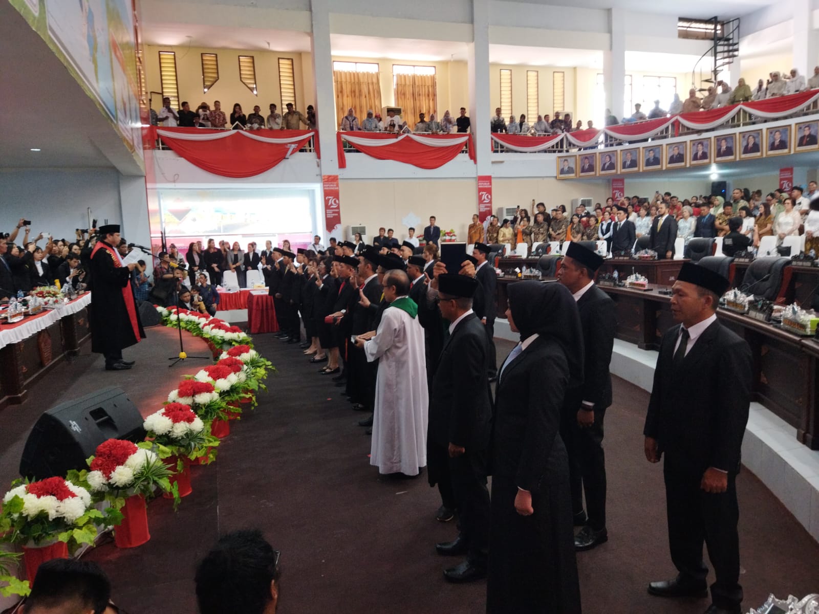 TERASMANADO.COM – DPRD Minahasa Utara resmi diisi 30 anggota periode 2024-2029 setelah dilantik dan diambil sumpah pada Senin (09/09/2024) oleh Ketua Pengadilan Negeri Airmadidi Juply S. Pansariang, SH., MH. Dari 30 anggota yang dilantik, 11 diantaranya merupakan wajah lama, yang sudah menjadi anggota DPRD pada periode 2020-2024.