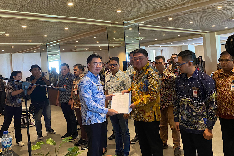 Sangihe — Bupati Kepulauan Sangihe, Michael Thungari, menghadiri kegiatan Sosialisasi Pemenuhan Komitmen Pelaku Usaha Industri Rumah Tangga (IRT) sekaligus melantik Tim Koordinasi Pembinaan dan Pengawasan Obat dan Makanan Kabupaten Kepulauan Sangihe tahun 2025, Kamis (25/9/2025).