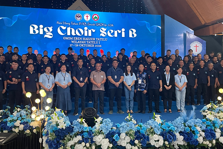 Minut, Terasmanado.com – Jadi tuan rumah di kategori Big Choir Seri B dalam rangka HUT ke-63 Pria Kaum Bapa (P/KB) Sinode GMIM, paduan suara P/KB GMIM Eben Haezer Tatelu Wilayah Tatelu I tampil memukau, Jumat (17/10/2025).