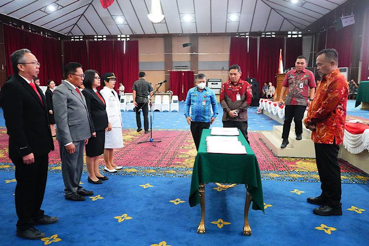 Manado, TERASMANADO.COM – Pergeseran jabatan dilingkup Pemerintah Kota Manado Kembali dilakukan. Rolling pejabat kali ini melibatkan pejabat administrator, pengawas, serta kepala Puskesmas. Prosesi pelantikan berlangsung di Aula Serbaguna Kantor Wali Kota Manado, Kamis (23/10/2025), dipimpin langsung oleh Wakil Wali Kota (Wawali) Manado, Richard Sualang.