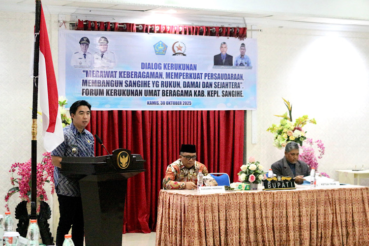 Dalam sambutannya, Bupati Thungari menyampaikan apresiasi kepada Forum Kerukunan Umat Beragama (FKUB) dan Kementerian Agama melalui Kanwil Sulawesi Utara atas sinergi yang terus terjalin dalam menjaga harmoni kehidupan beragama di wilayah perbatasan NKRI.
