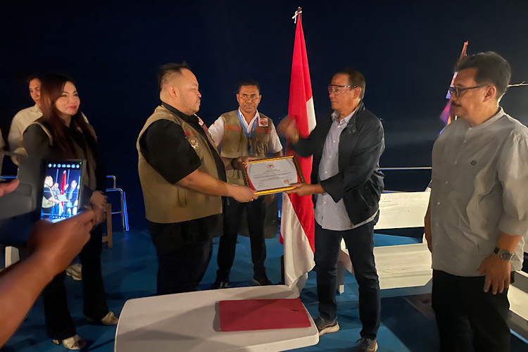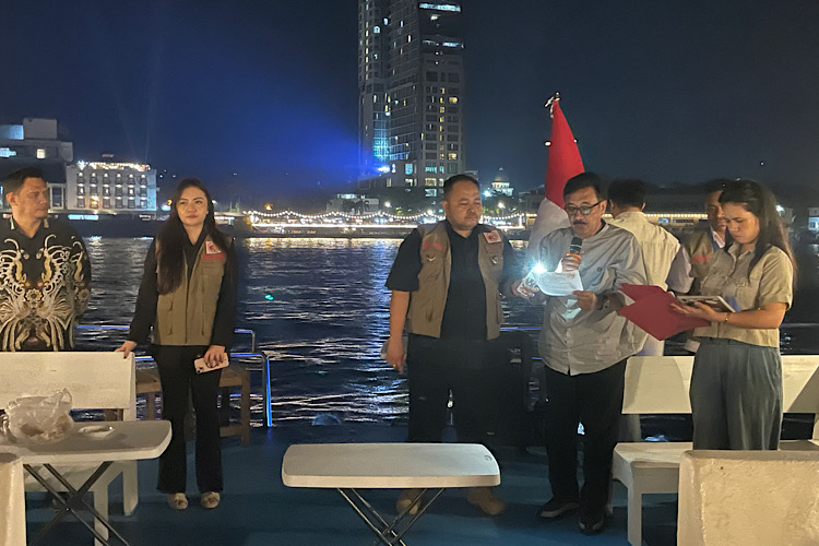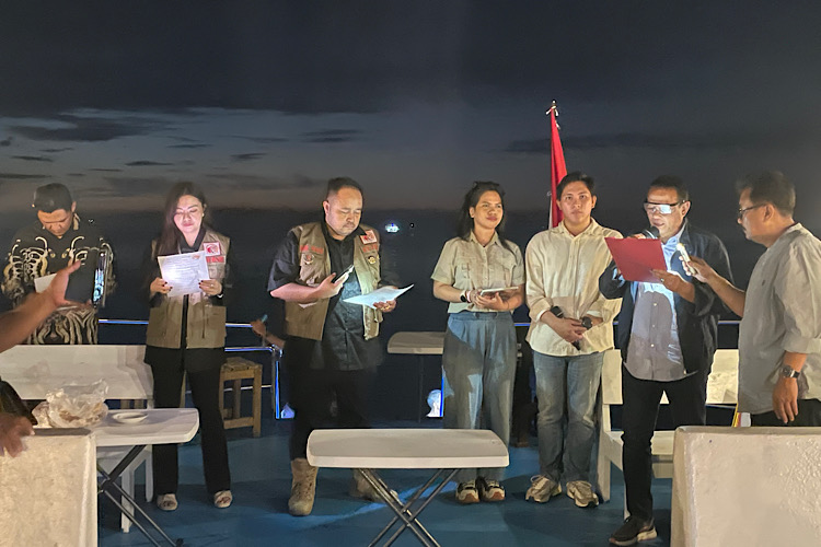 “Perwakilan ada banyak. Menyaksikan malam hari ini pelantikan para personel dalam organisasi akan bekerja demi bangsa dan negara. Kalau demi bangsa dan negara itu, berarti tidak ada pamrih, karena ini untuk kemajuan bangsa dan negara di masa yang akan datang,” ujarnya sambil kembali mengucapkan terima kasih kepada panitia yang bisa melaksanakan pelantikan di atas kapal.
