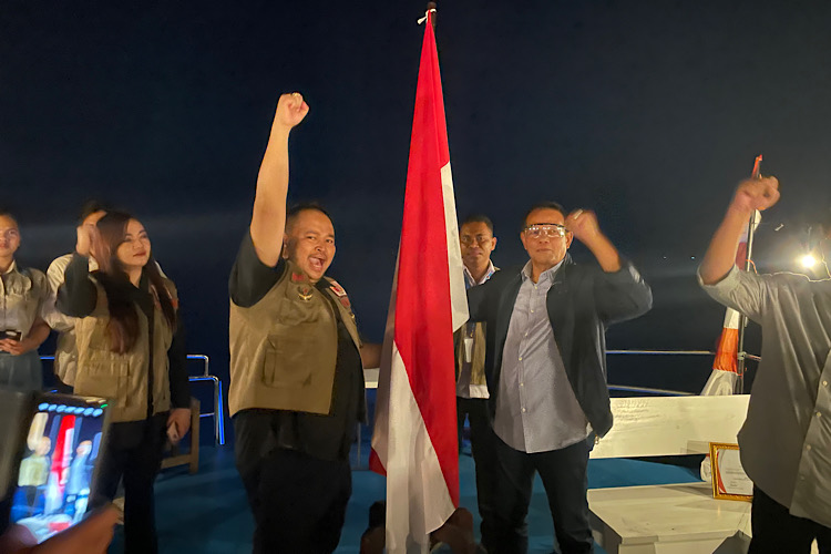 “Perwakilan ada banyak. Menyaksikan malam hari ini pelantikan para personel dalam organisasi akan bekerja demi bangsa dan negara. Kalau demi bangsa dan negara itu, berarti tidak ada pamrih, karena ini untuk kemajuan bangsa dan negara di masa yang akan datang,” ujarnya sambil kembali mengucapkan terima kasih kepada panitia yang bisa melaksanakan pelantikan di atas kapal.