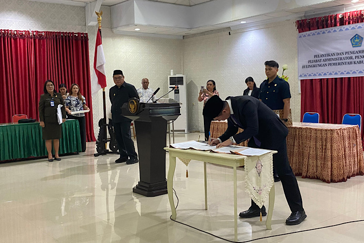 Sangihe, TERASMANADO.COM — Bupati Kepulauan Sangihe, Michael Thungari, melantik 28 pejabat administrator, pengawas, dan fungsional di lingkungan Pemerintah Kabupaten Kepulauan Sangihe. Kegiatan berlangsung di Ruang Serbaguna Rumah Jabatan Bupati, Kamis (6/11/2025).