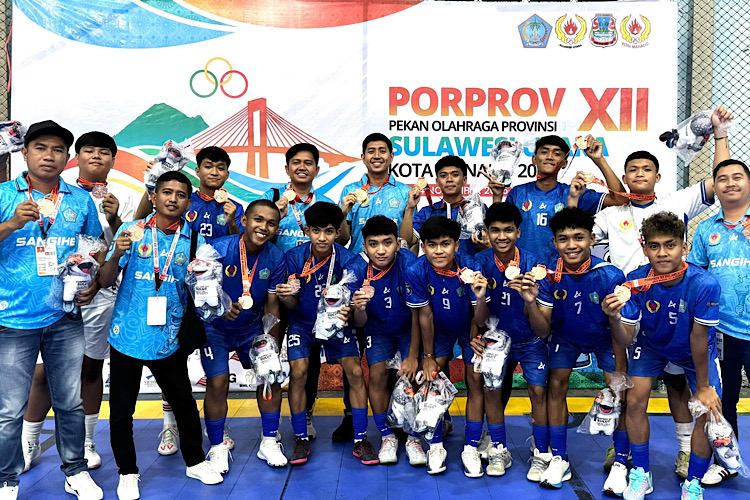 Sangihe, TERASMANADO.COM — Tim Futsal Kabupaten Kepulauan Sangihe mampu menunjukkan ketangguhan mereka. Pada ajang Pekan Olahraga Provinsi (Porprov) XII Sulawesi Utara, Jumat (21/11/2025), skuad futsal Sangihe berhasil membawa pulang medali perunggu melanjutkan jejak prestasi yang telah terjaga sejak 2017.