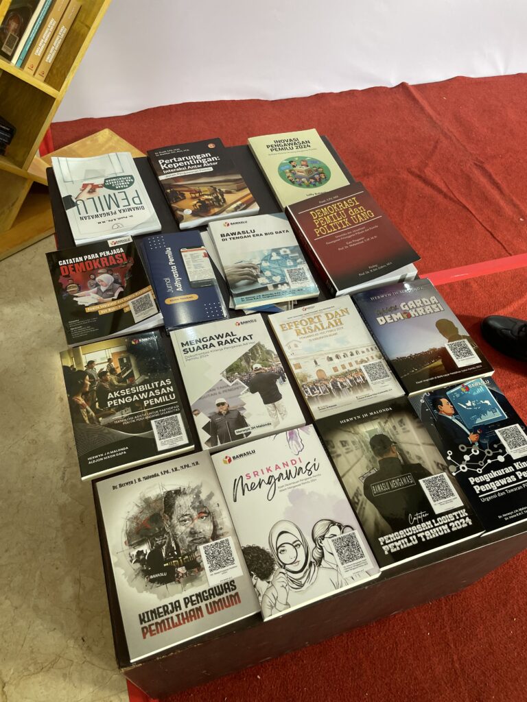 Dalam kegiatan ini, terlihat buku-buku terkait pengawasan kepemiluan dan juga pelaksanan kegiatan kepemiluan. “Ada 10 buku yang sudah saya buat, semua tugas yang kami lakukan dituangkan dalam buku-buku ini, berharap menjadi referensi bagi penyelenggara saat ini dan kedepan bahkan membuka jendela informasi bagi masyarakat luas,” tutup Herwyn. (ivo)