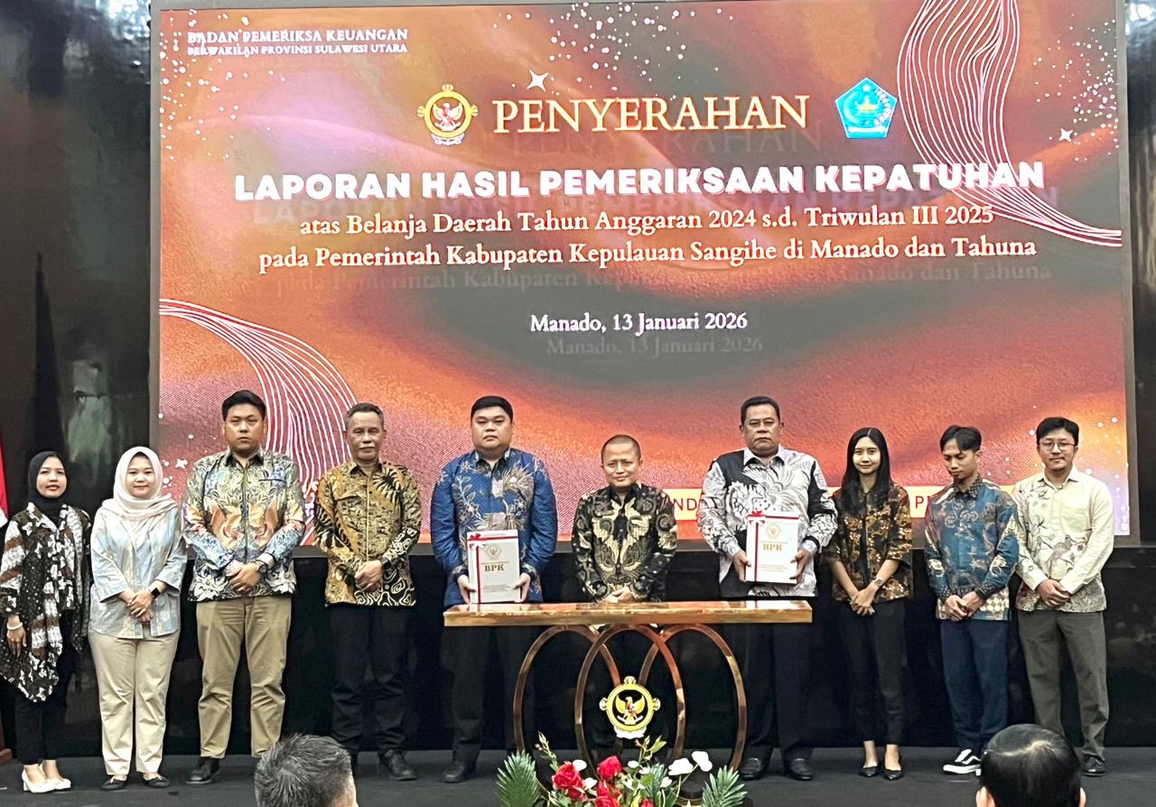 Sangihe — Pemerintah Kabupaten Kepulauan Sangihe menegaskan komitmennya dalam memperbaiki tata kelola belanja daerah usai menerima Laporan Hasil Pemeriksaan (LHP) Kepatuhan atas Belanja Daerah Tahun Anggaran 2024 hingga Triwulan III Tahun 2025 dari Badan Pemeriksa Keuangan (BPK) RI.