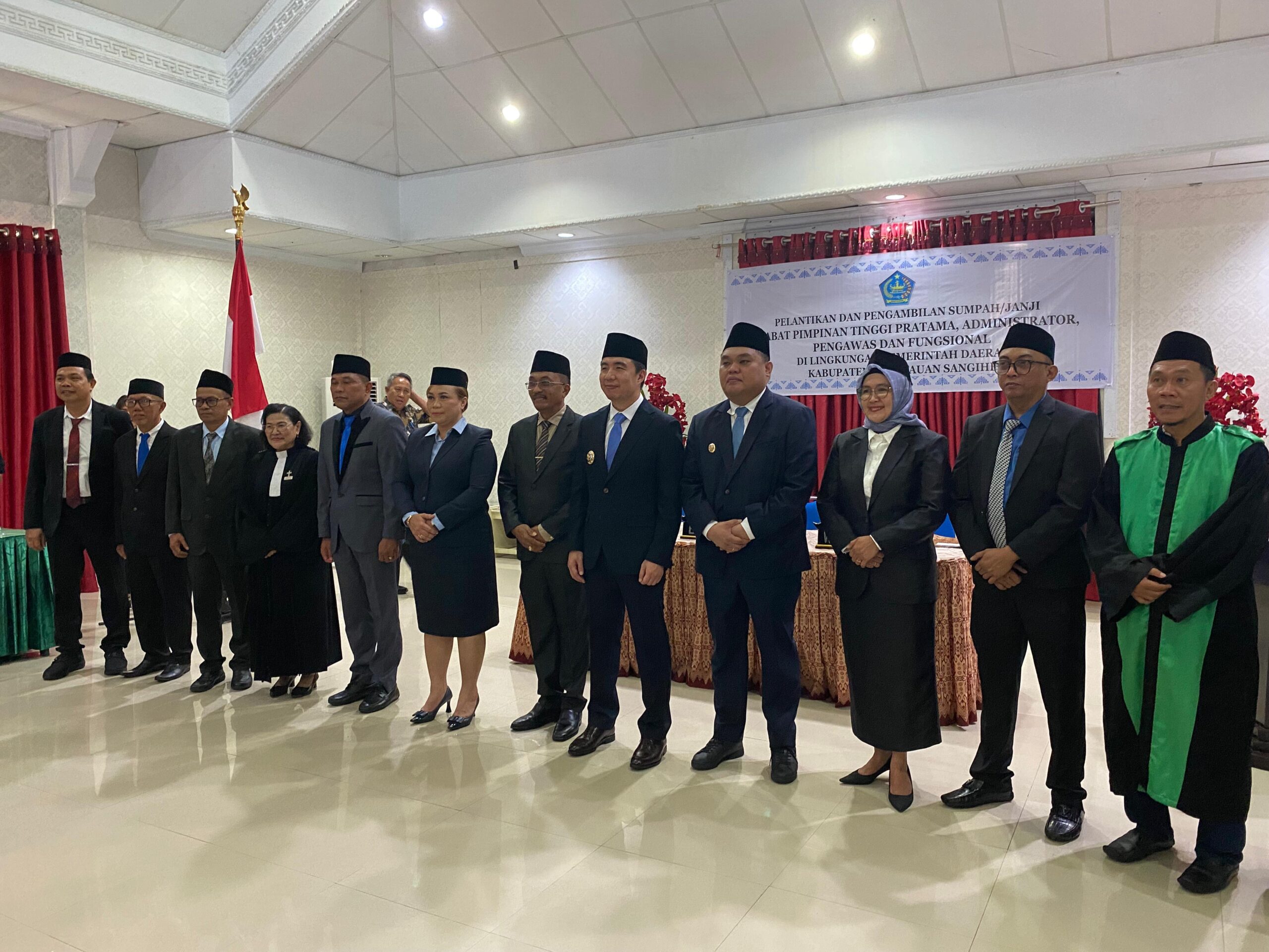 Sangihe — Pemerintah Kabupaten Kepulauan Sangihe kembali melakukan penataan birokrasi. Didampingi Wakil Bupati Tendris Bulahari, Bupati Kepulauan Sangihe, Michael Thungari, melantik dan mengambil sumpah janji 68 Pejabat Manajerial dan Non Manajerial di Ruang Serbaguna Rumah Jabatan Bupati, Kamis (12/2/2026).