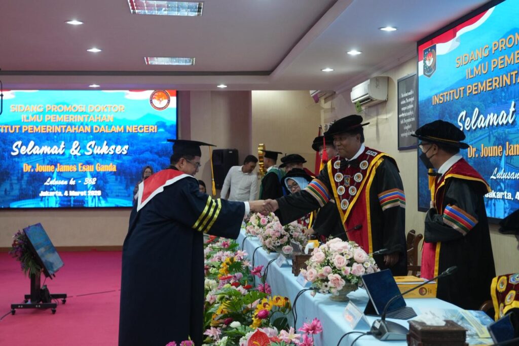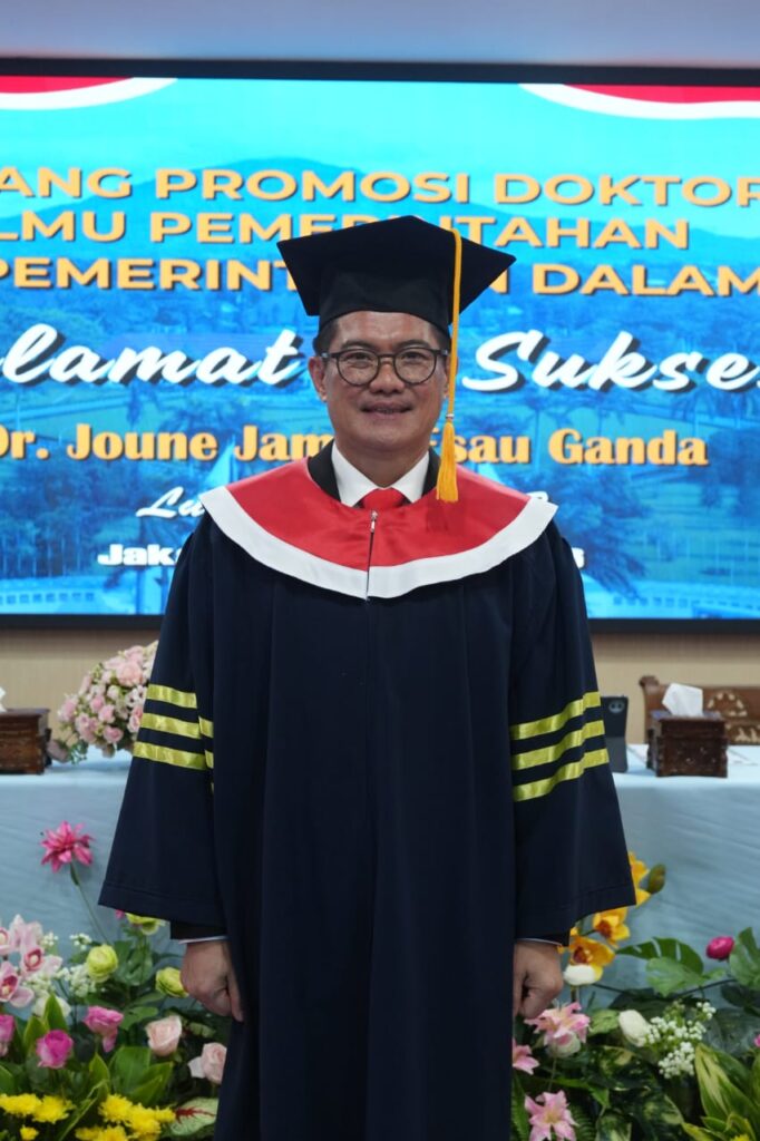 Jakarta, TERASMANADO.COM – Bupati Minahasa Utara, Joune Ganda, resmi menyandang gelar doktor, setelah sukses mempertahankan disertasinya di Sekolah Pascasarjana Institut Pemerintahan Dalam Negeri (IPDN), Rabu (04/03/2026).