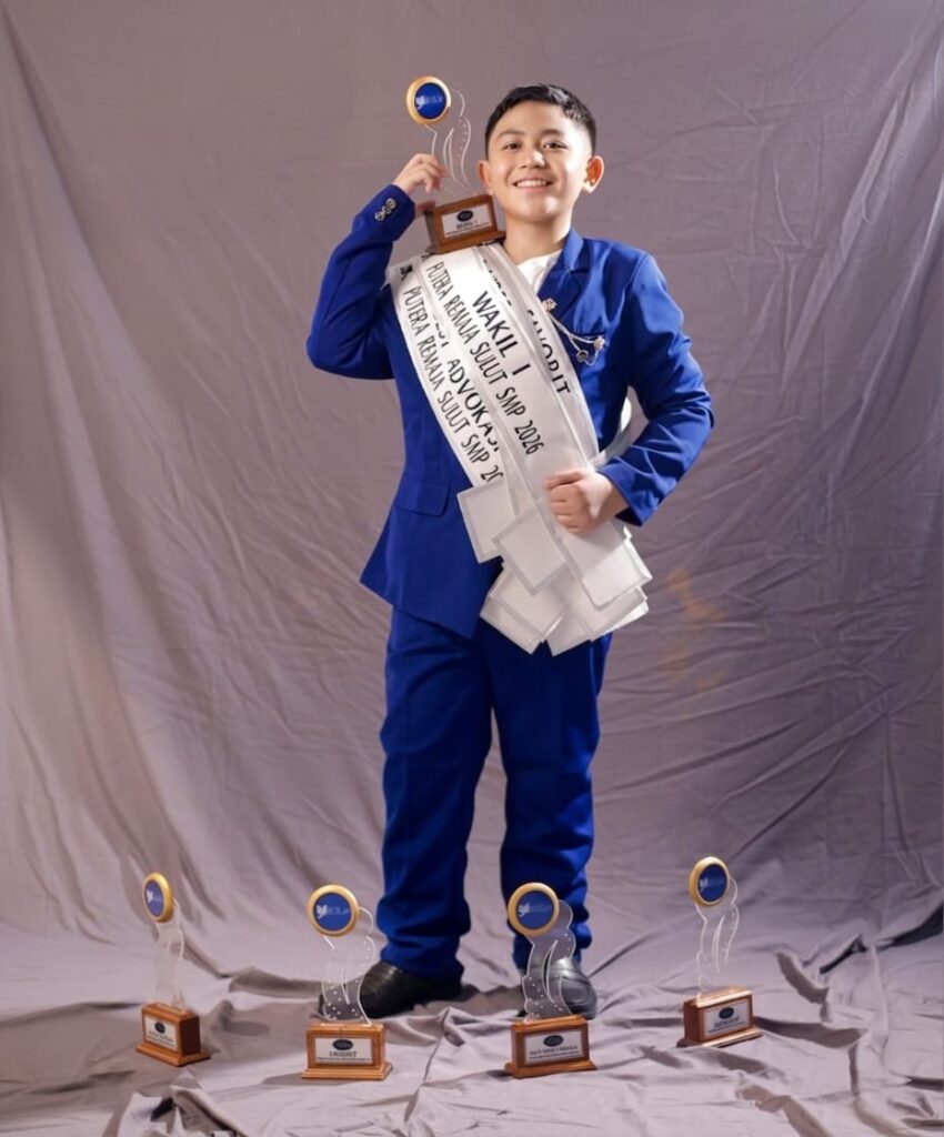 Di usia yang baru menginjak 13 tahun, nama Jayden Aviel Matthew Manoppo mulai mencuri perhatian. Siswa SMP Kristen Eben Haezer 2 Manado ini tampil menonjol dalam ajang Pemilihan Putera Puteri Remaja Sulawesi Utara 2026 dengan torehan lima gelar sekaligus, sebuah capaian yang jarang diraih dalam satu kompetisi.