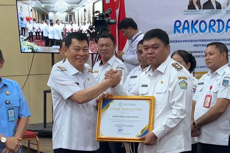 Penghargaan tersebut diterima langsung oleh Wakil Bupati Kepulauan Sangihe, Tendris Bulahari, saat menghadiri kegiatan yang digelar di Ruang C.J. Rantung, Kantor Gubernur Sulut, Rabu (15/4/2026).
