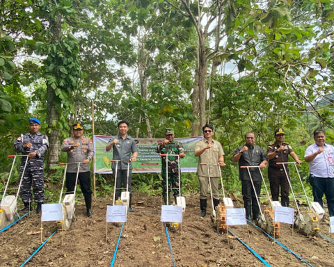 Sangihe — Dalam rangka mendukung program Swasembada Pangan Nasional Tahun 2025, Polres Kepulauan Sangihe melaksanakan kegiatan Penanaman Jagung Serentak Kuartal IV sekaligus mengikuti secara daring Peresmian Gudang Ketahanan Pangan Polri, Rabu (8/10/2025), bertempat di lahan penanaman jagung Polres Kepulauan Sangihe, RT 9,