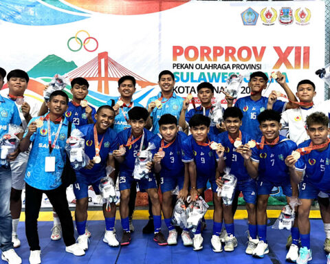 Sangihe, TERASMANADO.COM — Tim Futsal Kabupaten Kepulauan Sangihe mampu menunjukkan ketangguhan mereka. Pada ajang Pekan Olahraga Provinsi (Porprov) XII Sulawesi Utara, Jumat (21/11/2025), skuad futsal Sangihe berhasil membawa pulang medali perunggu melanjutkan jejak prestasi yang telah terjaga sejak 2017. Manajer Tim Futsal